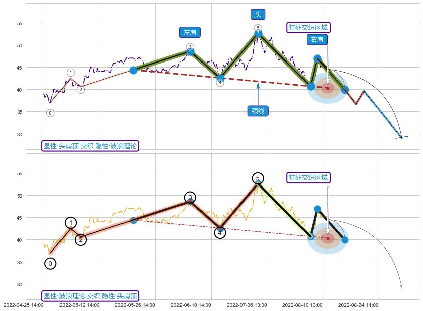 ➢ 波浪理论击穿破位C点继续下跌 🔜 头肩顶临近支撑猜想转换阻力下跌 综合量化分数:37.67 【偏空】