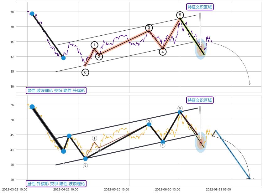 ➢ 波浪理论与升旗形信号事件周期长度级别相同,同周期信号事件