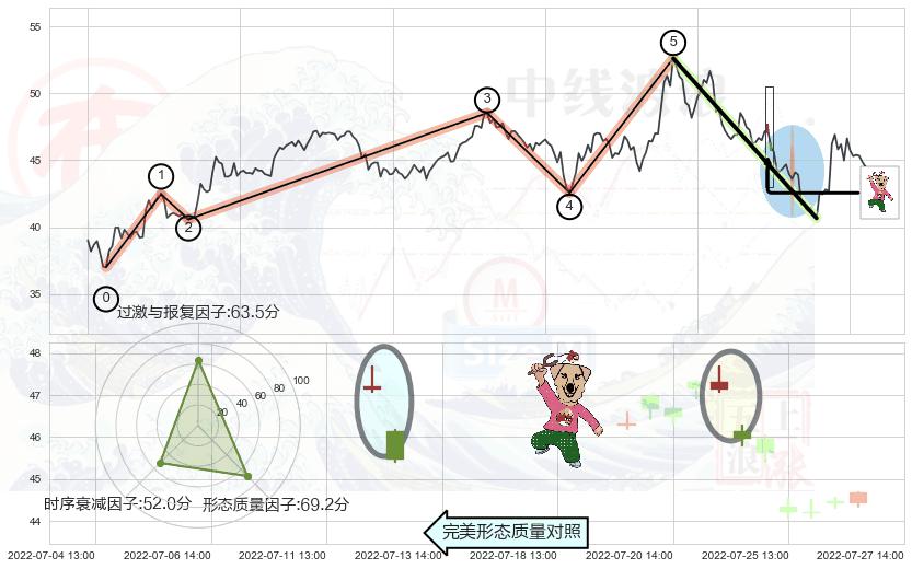 ➢ 下跌身怀六甲 🔜 波浪理论击穿破位C点继续下跌 综合量化分数:46.32 【中性】