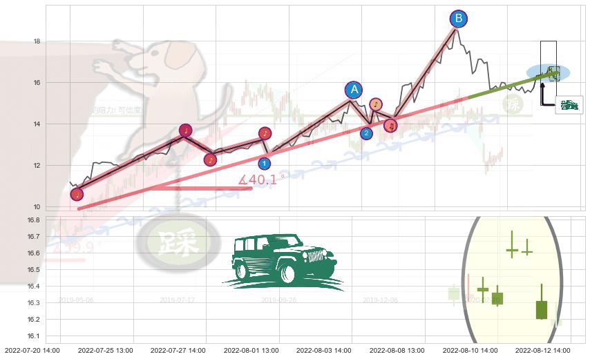 ♘ 阻力价格位16.68,可信任强度49.01%,距离最后交易2022-08-12 14:00形成的收盘价格16.16相差 +3.24%