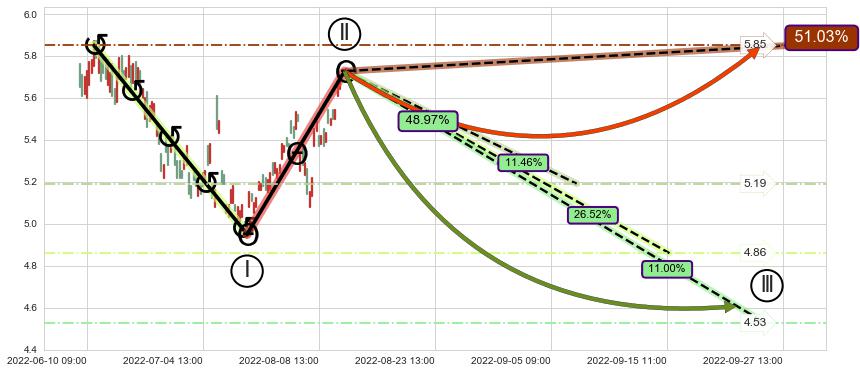 ➣ 循环浪继续向下【平均值】位置(09-15:12, 4.86),匹配聚类样本比例54.15%, 可能性概率26.52%