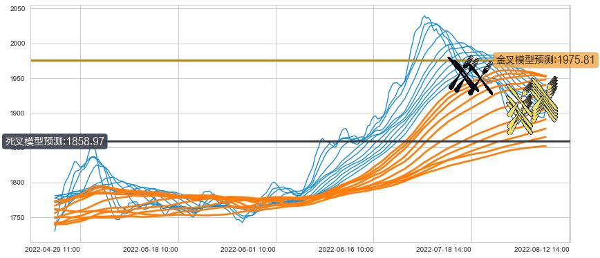 ➣ 40小时均线于(08-12 13:00: 1918.75)形成【金叉】基于【金叉历史模型】预测金叉后最高波峰价格: 1986.29, 金叉后最高价格1928.00,尚未达到预测最高波峰价格, 预期继续上涨