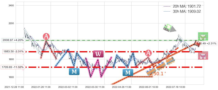 ♞ 20小时均线:1901.72,30小时均线:1909.02→ 快线<慢线