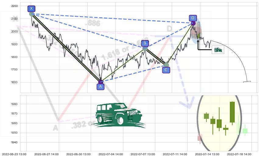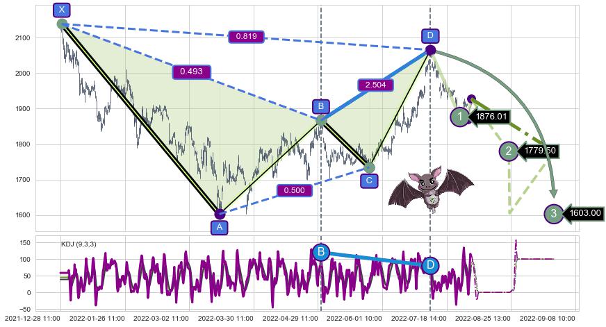 ➣ 谐波蝙蝠:已到达d点:猜想c拉升到达d点后泄力性下沉下跌(均值回复)