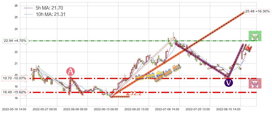 ♘ 阻力价格位22.94,可信任强度52.31%,距离最后交易2022-08-12 14:00形成的收盘价格21.91相差 +4.70%