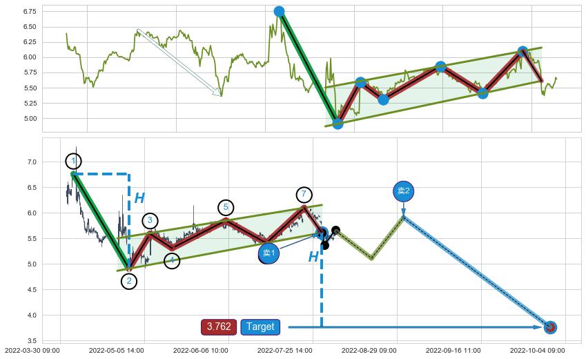 ➣ D点拟合预测价格4.93,距离最后交易收盘价格5.64相差 -12.61%