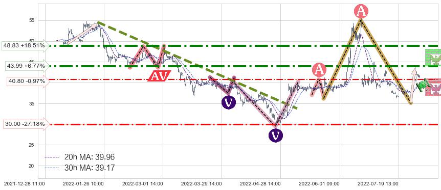♘ 阻力价格位43.99,可信任强度70.71%,距离最后交易2022-08-12 14:00形成的收盘价格41.20相差 +6.77%