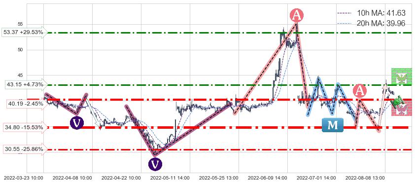 ♘ 阻力价格位43.15,可信任强度55.12%,距离最后交易2022-08-12 14:00形成的收盘价格41.20相差 +4.73%