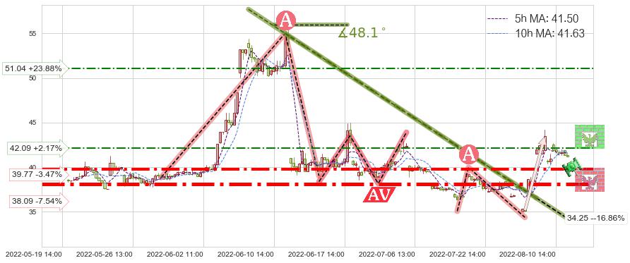 ♘ 支撑价格位39.77,可信任强度83.74%,距离最后交易2022-08-12 14:00形成的收盘价格41.20相差 -3.47%
