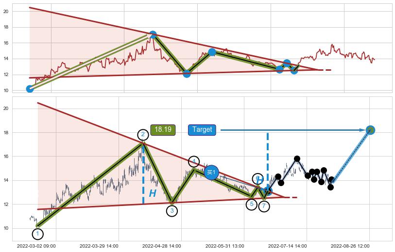 ➢ 【仅预测突破】最后价格:13.87与预测突破价格:14.53→【空间中等】后续最小【整理】第一目标价格→(08-22:11: 17.30 )