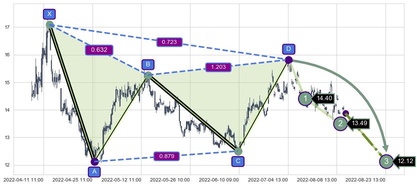➣ BC回撤位置在AB的87.9%,符合形态要求
