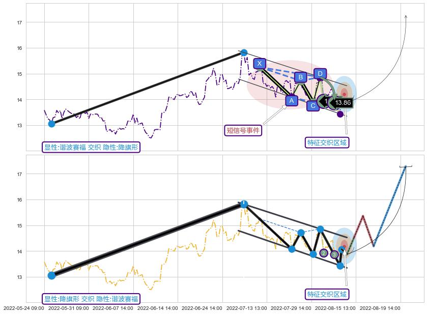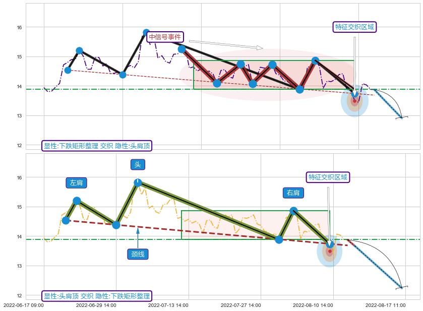 ➣ 【卖2】: 保守型 卖点→(08-12:13: 13.88 )形成下跌矩形整理突破后的【回抽确认】