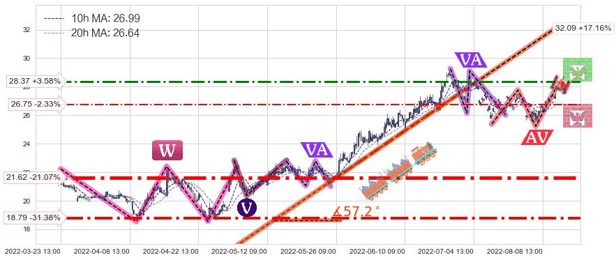 ♘ 阻力价格位28.37,可信任强度59.29%,距离最后交易2022-08-12 14:00形成的收盘价格27.39相差 +3.58%