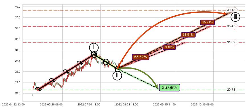 ➢ 大趋势走坏(跌破5浪起点位置)概率36.68%