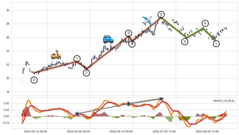 ➣ 第一, 三, 五浪上涨动能逐渐【增强变大】,趋势不断加固