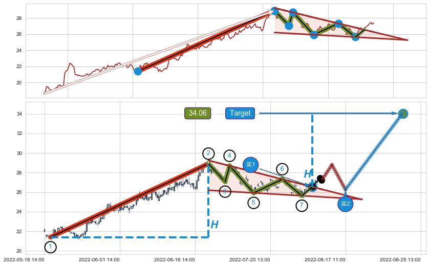 ➢ 最小中继整理涨幅→𝐇: 7.52 (𝐇楔型旗杆的长度:楔型起点→顶点)