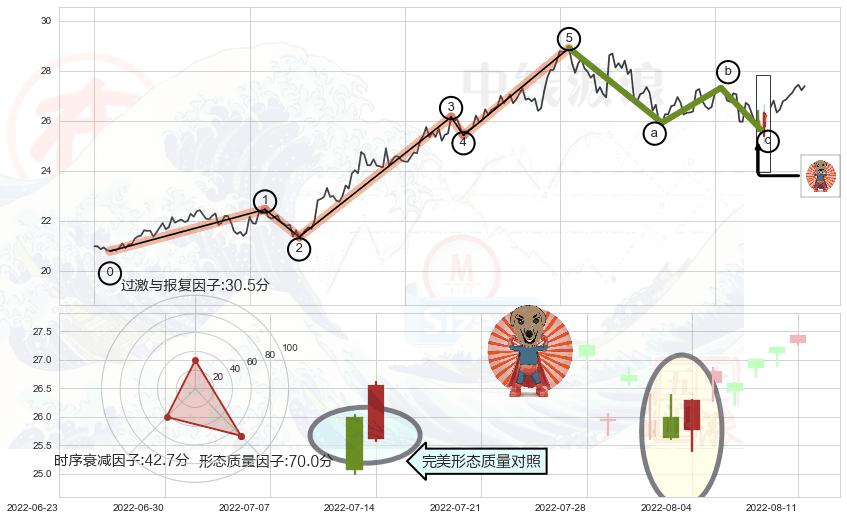 从2022-07-12 14:00至2022-08-12 14:00,共包含47个小时,阶段股价上涨5.90%,阶段股价变动位移路程比: 1 : 7