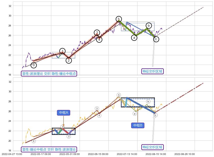 ➢ 波浪理论与缠论中枢点信号事件周期长度级别相同,同周期信号事件