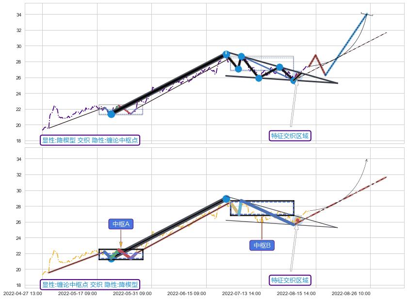 ➢ 降楔型与缠论中枢点信号事件周期长度级别相同,同周期信号事件