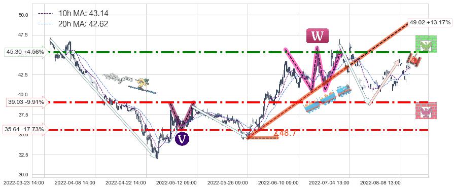 ♘ 阻力价格位45.30,可信任强度79.87%,距离最后交易2022-08-12 14:00形成的收盘价格43.32相差 +4.56%