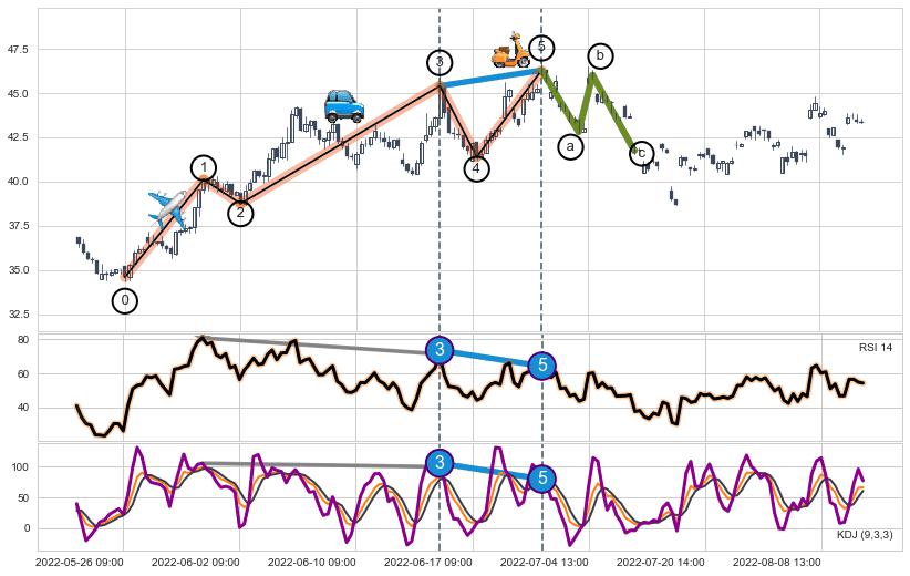 ➣ 第一, 三, 五浪上涨动能逐渐【衰弱变小】,趋势呈现不稳迹象