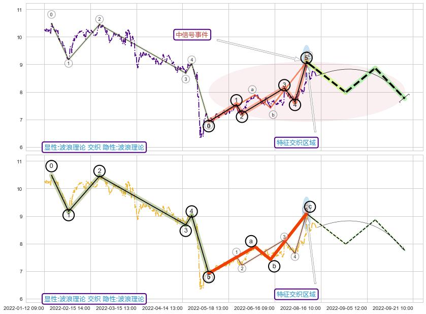 ➢ 波浪理论:猜想击穿突破c点后继续上涨 → 上涨 → 机会信号 → 小趋势跟踪