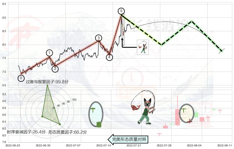➢ 看跌(高位倒锤头)流星线 🔜 波浪理论上涨浪:浪5回调拐点 综合量化分数:44.55 【偏空】