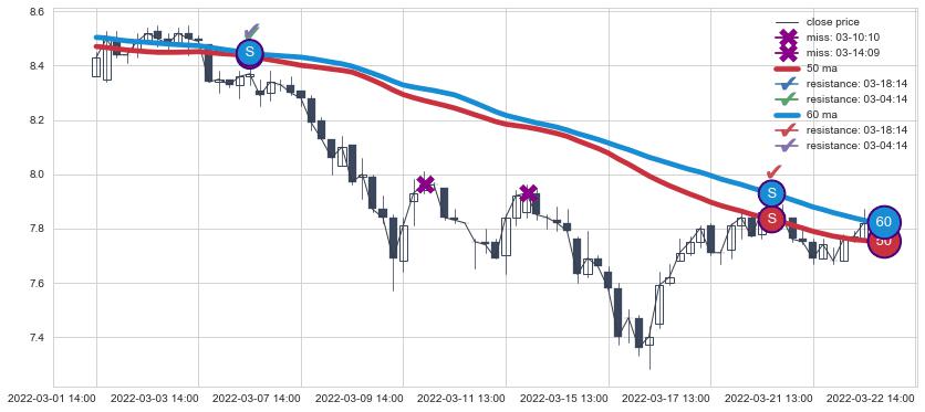 📝 多条均线形成死叉后走势最低价格达到: 6.52