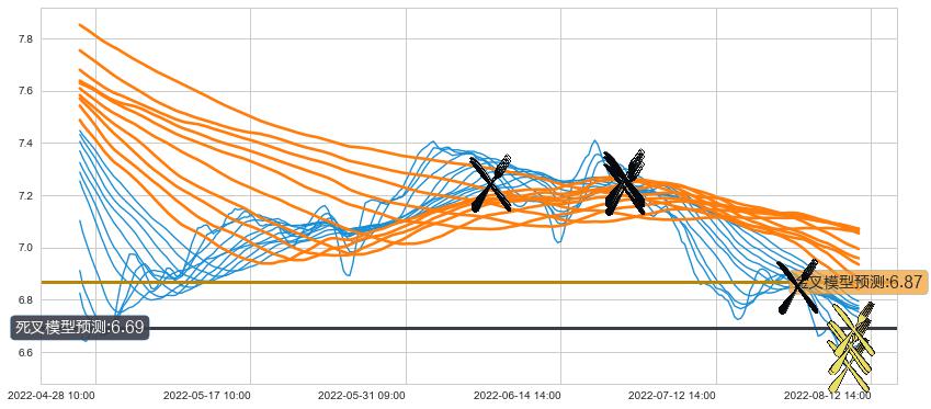 ➣ 55小时均线于(06-08 10:00: 7.23)形成【死叉】基于【死叉历史模型】预测死叉后最低波谷价格: 6.75, 死叉后最低价格6.52,已经下跌超出预测最低波谷价格, 预期反弹