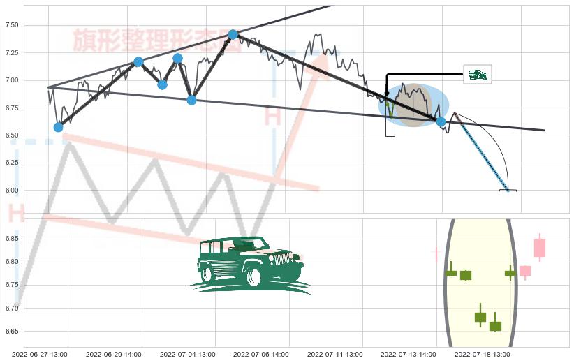 ➣ 【多空实力根本性转变→大方向抉择→空方占优】已在08-08:13突破【支撑】颈线 6.62