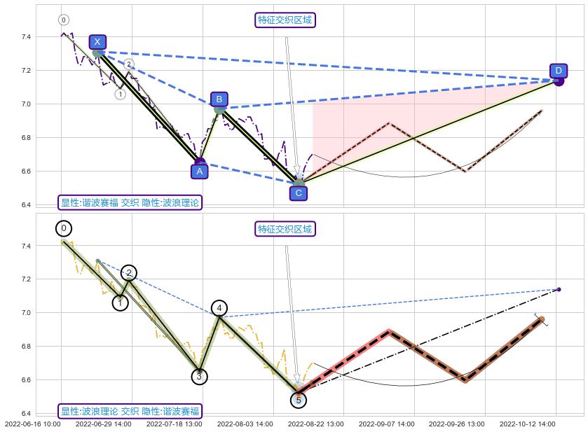 ➣ 未完成【赛福】形态起点X: 06-21:14, 已到达C点: 08-10:13, 预测最终D点: 10-13:13, 共164交易小时