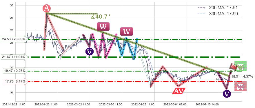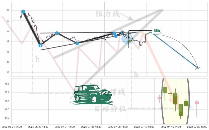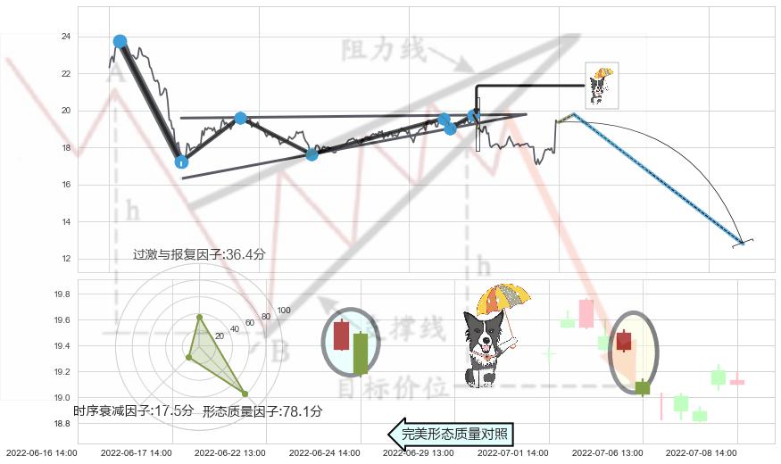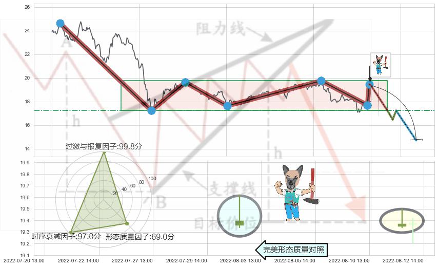 ♘ 在最后的下跌阶段2022-01-17 11:00至2022-08-10 14:00,存在 破位边缘的阻力位 ,阻力价格18.51,可信任强度76.74%,其距离最后价格19.36相差 -4.37%