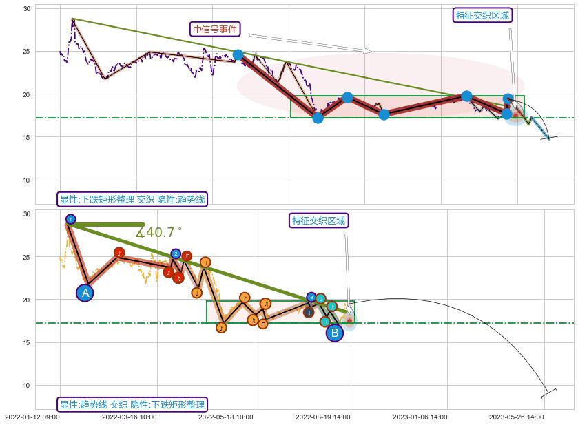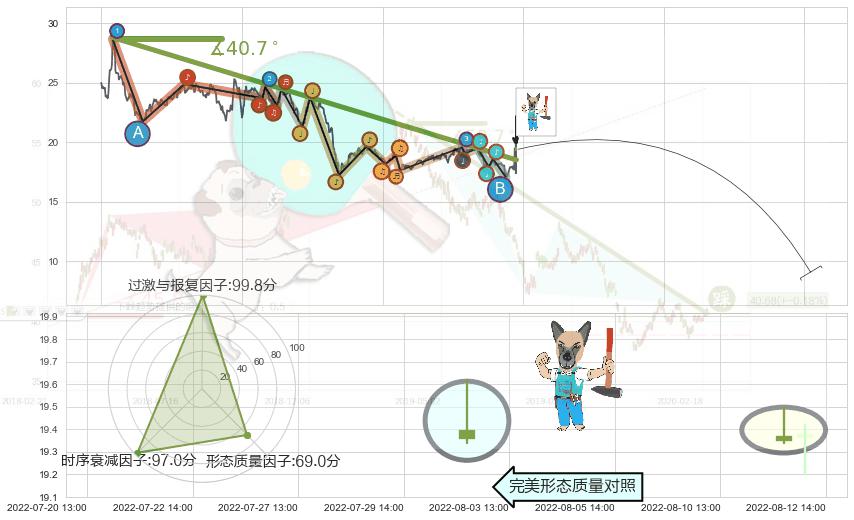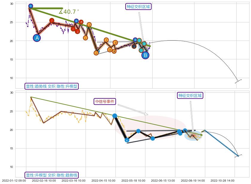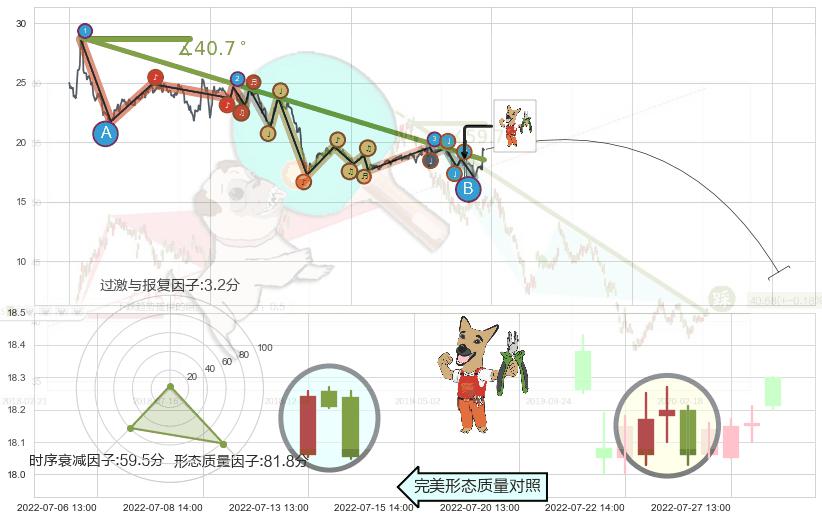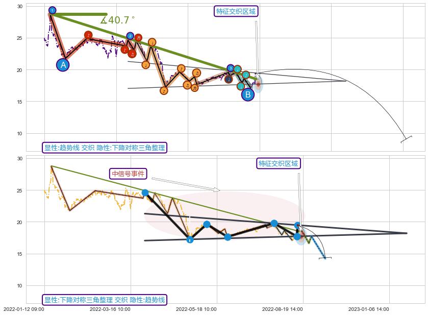 从2022-01-17 11:00至2022-08-10 14:00,共包含572个小时,阶段股价下跌-43.76%,阶段股价变动位移路程比: 1 : 11,下跌趋势角度: 40.7