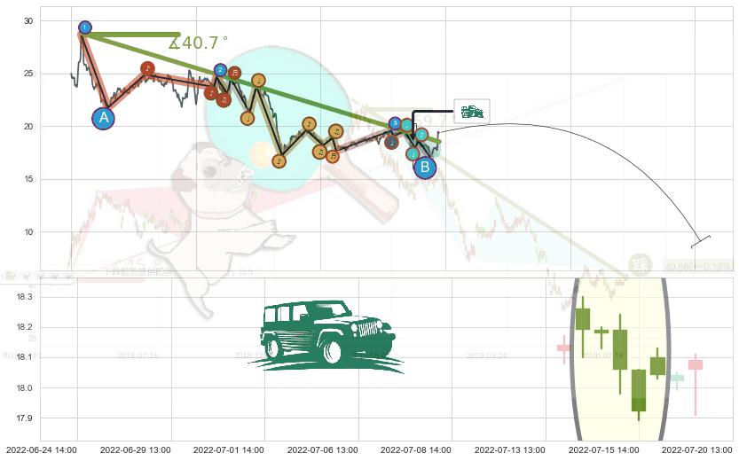 🦴 长线均值回复组合短线趋势跟踪[强阻力信号]2022-01-17 11:00-2022-08-10 14:00下跌趋势依然成立(下跌趋势跟踪依然存在),短线价格略微上行反弹(均值回复猜想),即将接近下跌趋势提供的未破位阻力价格:18.51。