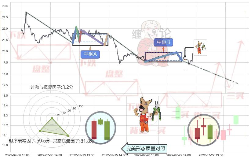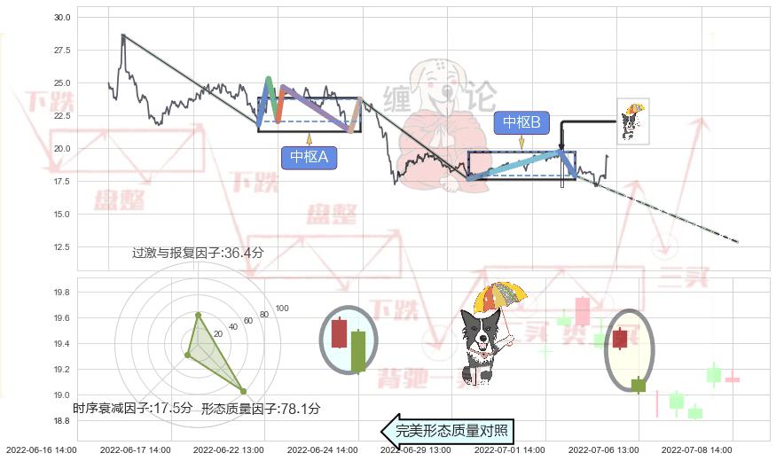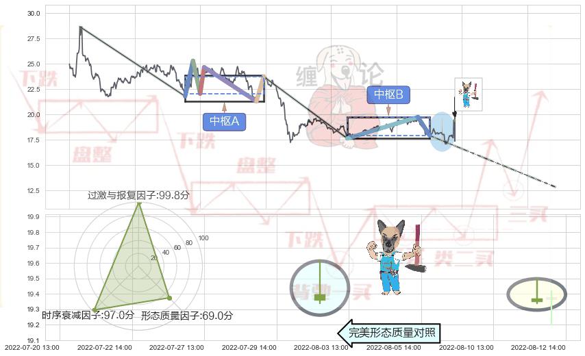 ➢ 缠论中枢点破位中枢B支撑下拉 🔜 下跌矩形整理临近支撑猜想转换阻力下跌 综合量化分数:41.80 【偏空】