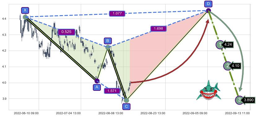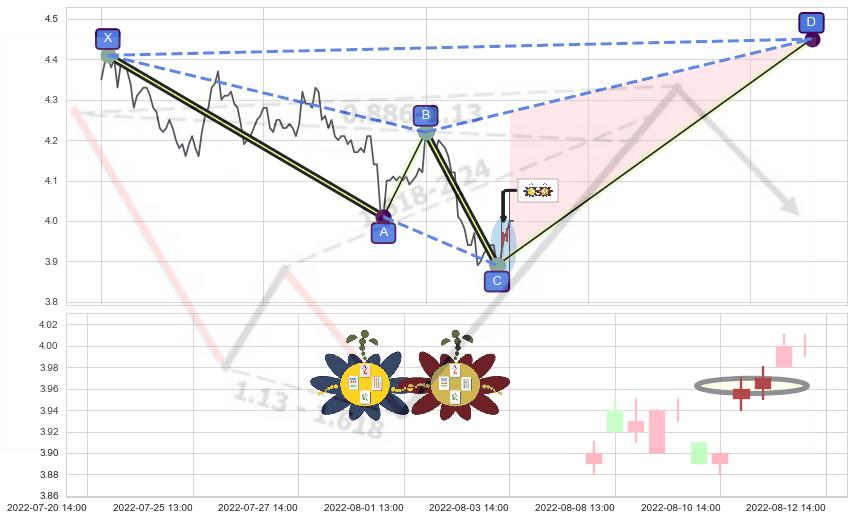 ➣ 未完成【鲨鱼】形态起点X: 06-07:09, 已到达C点: 08-10:13, 预测最终D点: 09-05:10, 共217交易小时