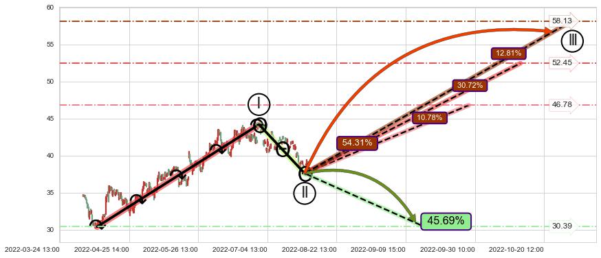 ➢ 大趋势走坏(跌破5浪起点位置)概率45.69%