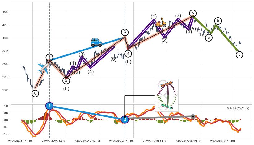 ➣ 第一, 三, 五浪上涨动能逐渐【衰弱变小】,趋势呈现不稳迹象