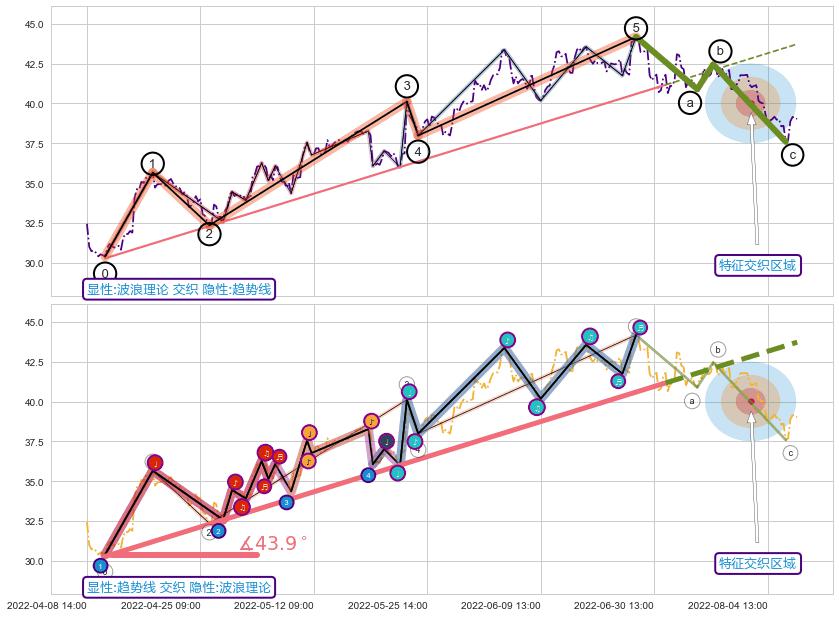 ➣ ['回调abc识别为: 【锯齿型调整浪】 ', '锯齿型:子浪535结构 ⓑ点振幅较小,ⓒ点继续发力远超ⓐ点结束位置']