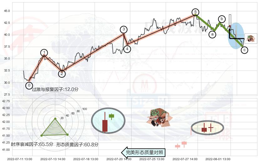 ➢ 顶部尽头线(下山虎) 🔜 波浪理论击穿破位C点继续下跌 综合量化分数:48.09 【中性】