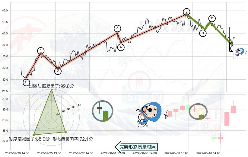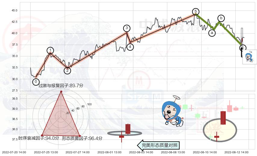 从2022-07-19 13:00至2022-08-12 14:00,共包含38个小时,阶段股价下跌-8.12%,阶段股价变动位移路程比: 1 : 3