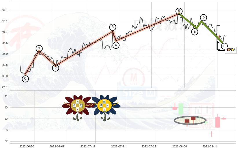 ➣ 波浪理论:猜想击穿破位c点后继续下跌 → 下跌 → 风险信号 → 小趋势跟踪