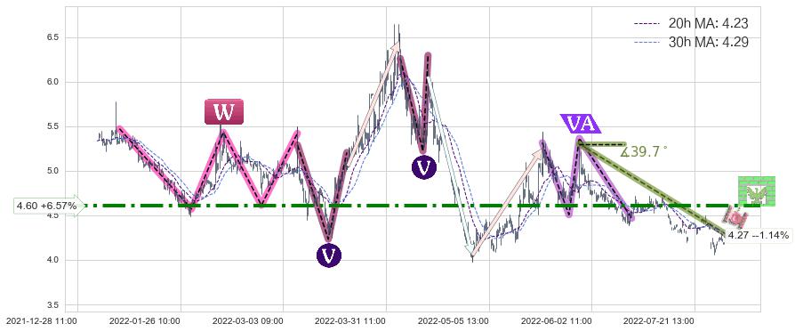 2022-06-29: 第一阻力位4.60强力阻拦了上升趋势,成功阻止了价格的继续上涨。
