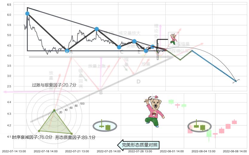 2022-06-14: 时域附近第一阻力位4.60持续的对下跌趋势进行阻拦,有效地放缓了下跌的速度。
