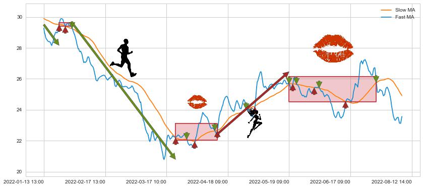 01-26 14:00至03-22 09:00 慢线与快线呈空头排列, 慢线与快线接触少,无缠绕