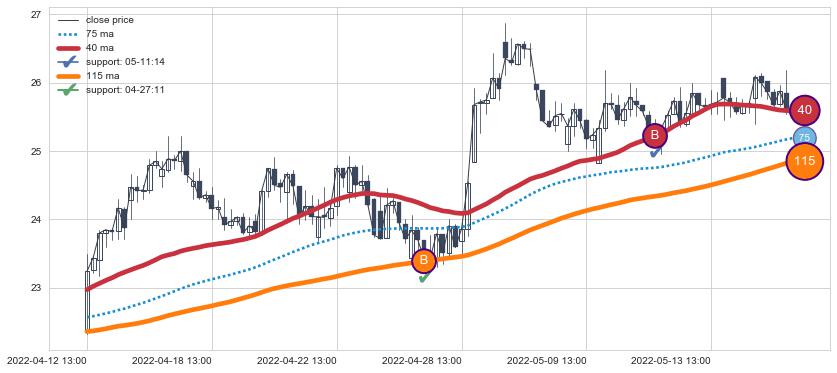 👍 尚未达到多条均线预测的最高波峰价格的平均值, 预期继续上涨