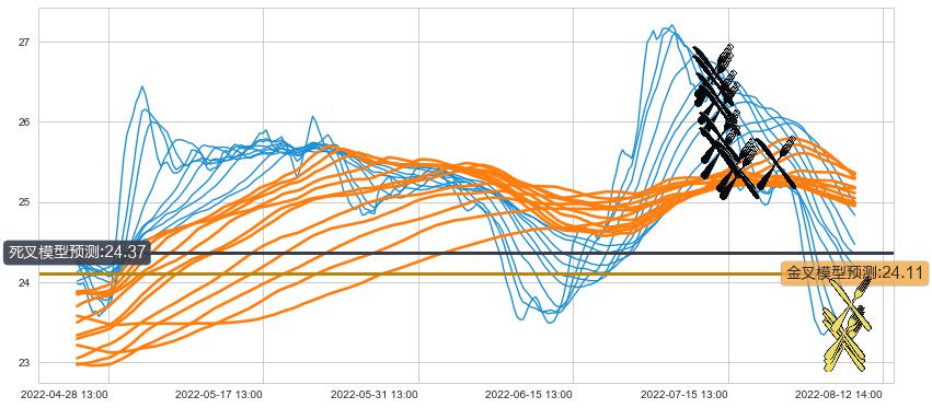➢ 80小时均线于(07-26 14:00: 25.47)形成【死叉】基于【死叉历史模型】预测死叉后最低波谷价格: 24.07, 死叉后最低价格22.80,已经下跌超出预测最低波谷价格, 预期反弹