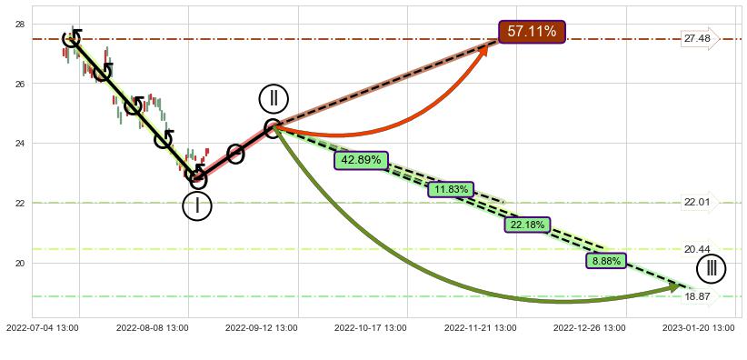 ➣ 预测:2022-08-29 14:00,【继续下探】稳定目前下跌趋势的前提下,预测价格:21.39