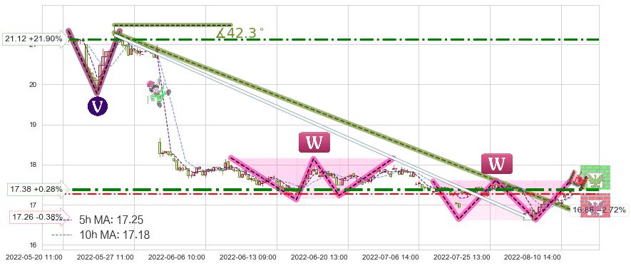 ♘ 阻力价格位17.38,可信任强度83.44%,距离最后交易2022-08-12 14:00形成的收盘价格17.33相差 +0.28%