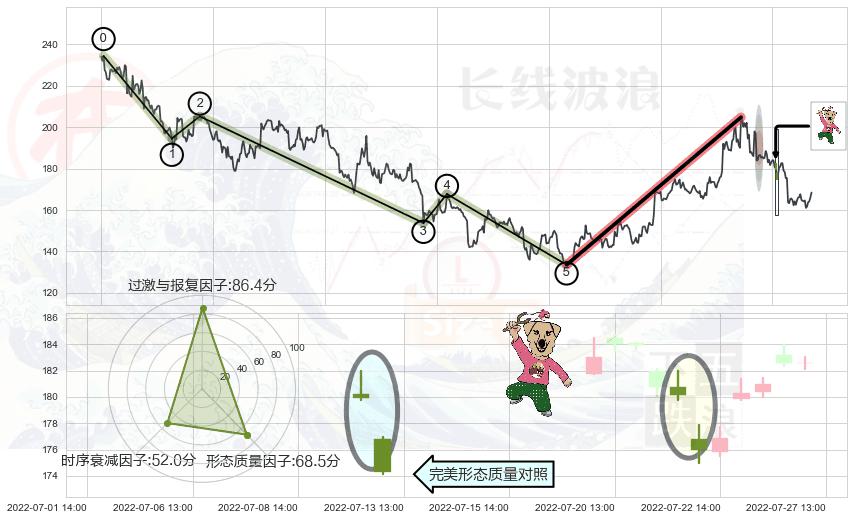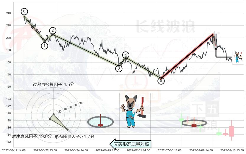 ➢ 🕰 价格走势在2022-07-21 14:00:00至2022-07-22 13:00:00期间形成射击之星形态,残存影响值:-5.59